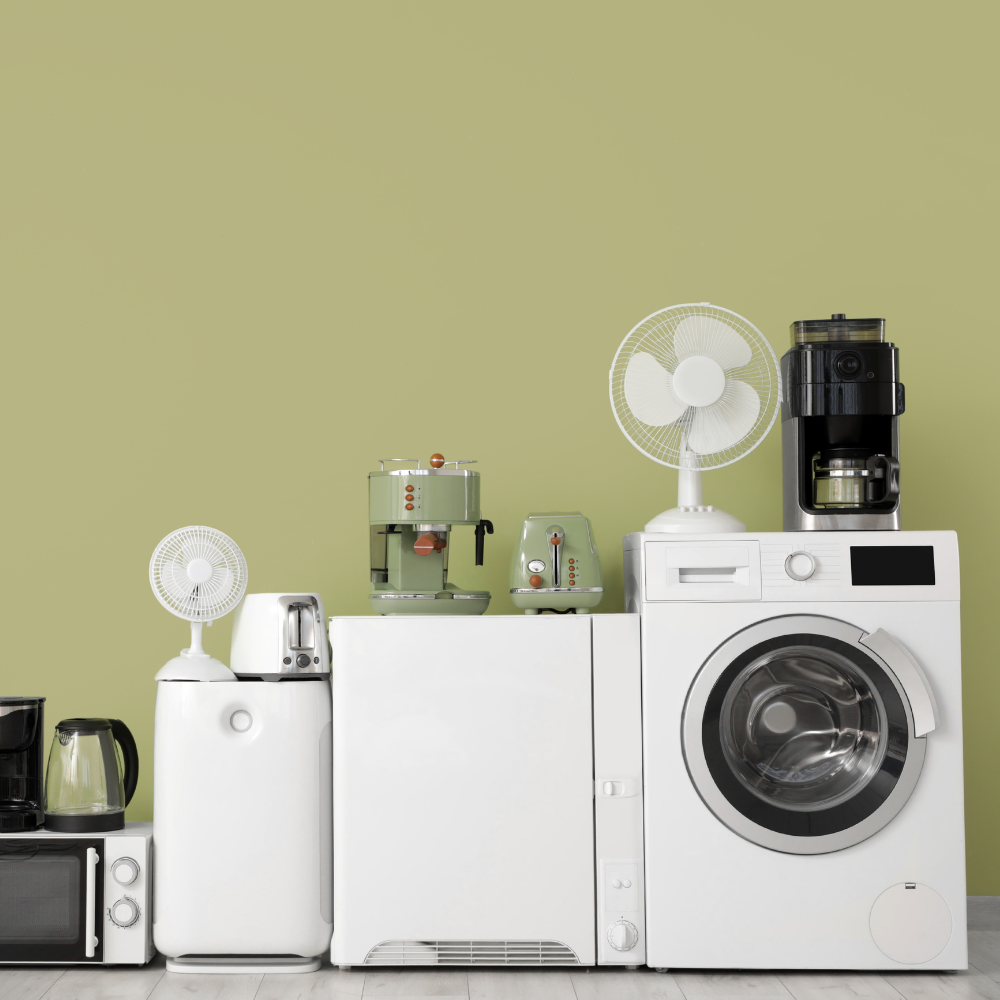 This includes refrigerators, washing machines, microwaves, air conditioners, kitchen appliances, and more.
